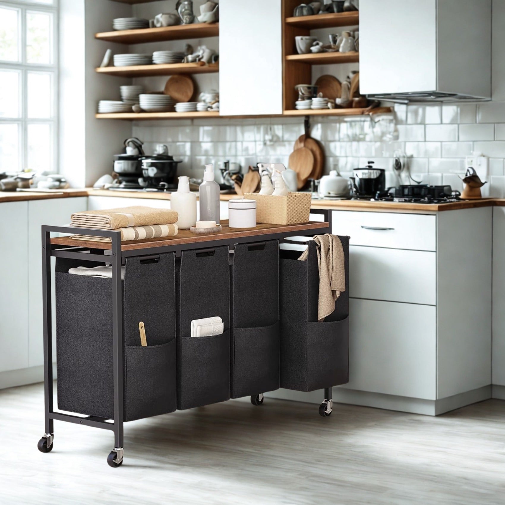 Large Wide Industrial 4 Pull Out Compartment Laundry Basket