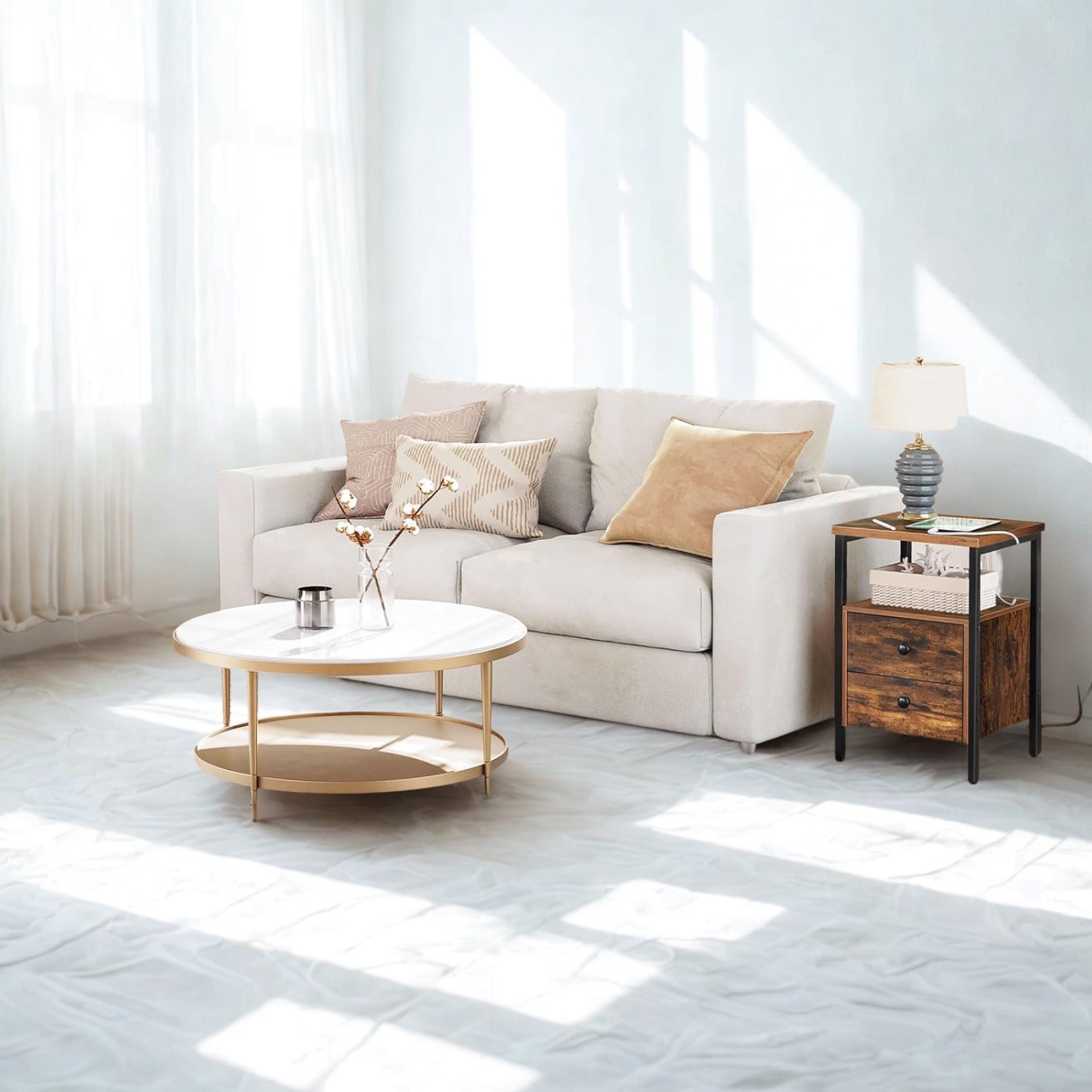 Spacious and Practical Storage: Featuring two drawers and open shelving, this side table makes excellent use of vertical space to keep everyday items neatly organised. The drawers store smaller essentials out of sight, while the open shelves provide quick access to frequently used items.